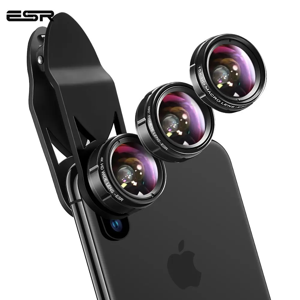ESR телефон Len 3 в 1/Лот 120 градусов широкоугольный 15x макро 195 градусов рыбий глаз линзы с зажимом подходит для всех камер комплекты телефона
