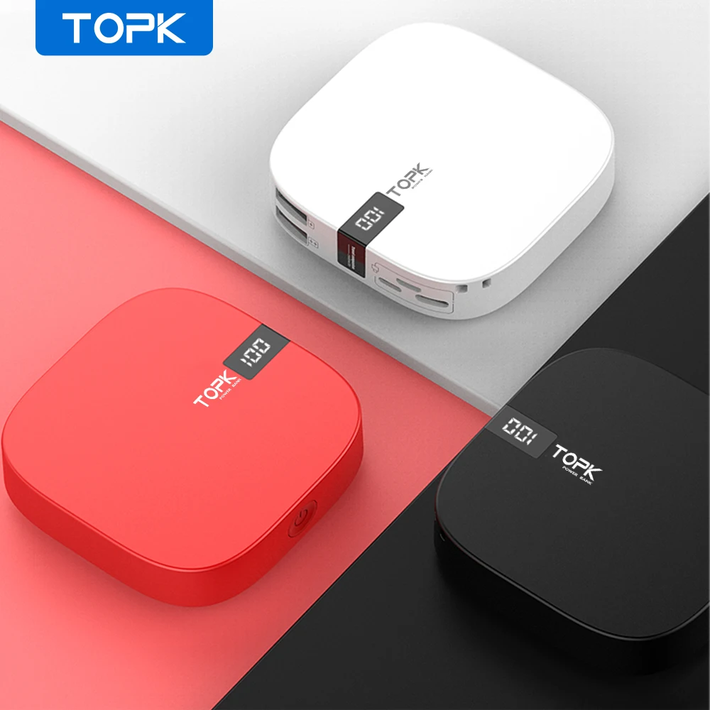 Мини Внешний аккумулятор TOPK 10000 мАч, портативное зарядное устройство, внешний аккумулятор usb type C для iPhone Xiaomi