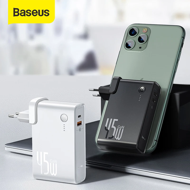 Внешний аккумулятор Baseus 2 в 1 GaN, 10000 мАч, 45 Вт, USB зарядное устройство, быстрая зарядка PD для iPhone, samsung, 5A, быстрая зарядка для ноутбука