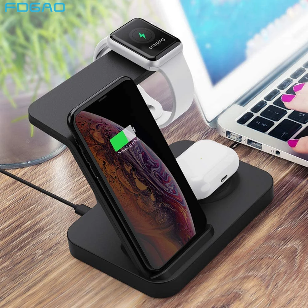 FDGAO 15 Вт Qi Беспроводное зарядное устройство 3 в 1 Зарядная подставка для Airpods Pro iWatch станция для Apple Watch 5 4 3 2 1 iPhone 11 XS XR X 8