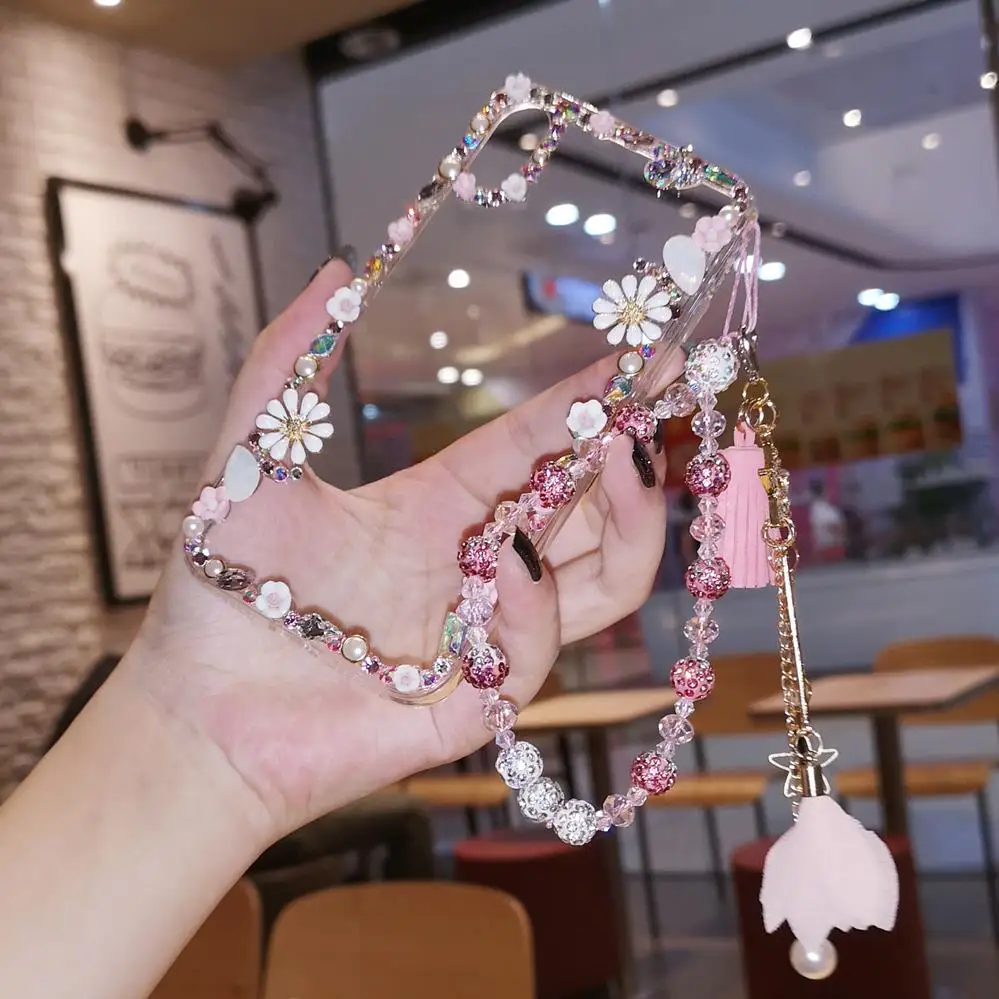 Роскошный чехол для iphone 11 pro с ромашками и кристаллами для iphone XS max XR X 8 6 6S 7 plus, Подарочный чехол для девушек + ремешок