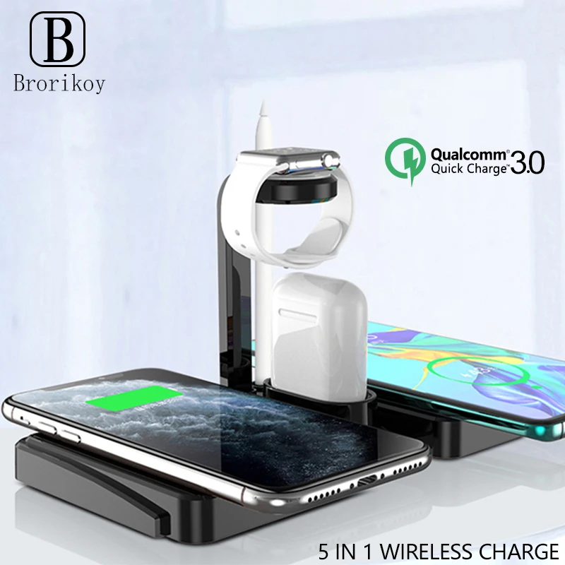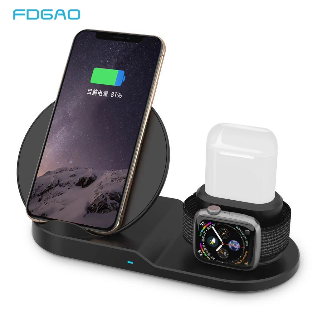 FDGAO 10 W быстрая Беспроводной Зарядное устройство для iPhone 8 X XS Max USB XR Ци зарядки Dock for Apple Watch 2 3 4 Airpods для samsung S9 S8 S7