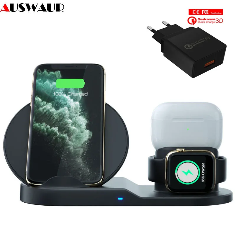 3 в 1 Быстрое беспроводное зарядное устройство для Apple Watch iWatch 1 2 3 4 Airpods QI Беспроводная док-станция для зарядного устройства для iPhone XR XS MAX