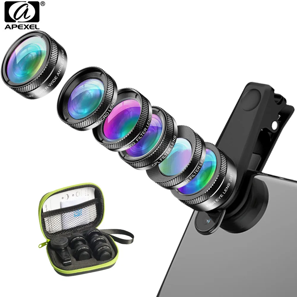 APEXEL новый комплект 6в1 объектив для камеры, объектив для фотографа, Объективы для мобильного телефона, Макро широкоугольный фильтр для глаз, CPL Для iphone Xiaomi mi9