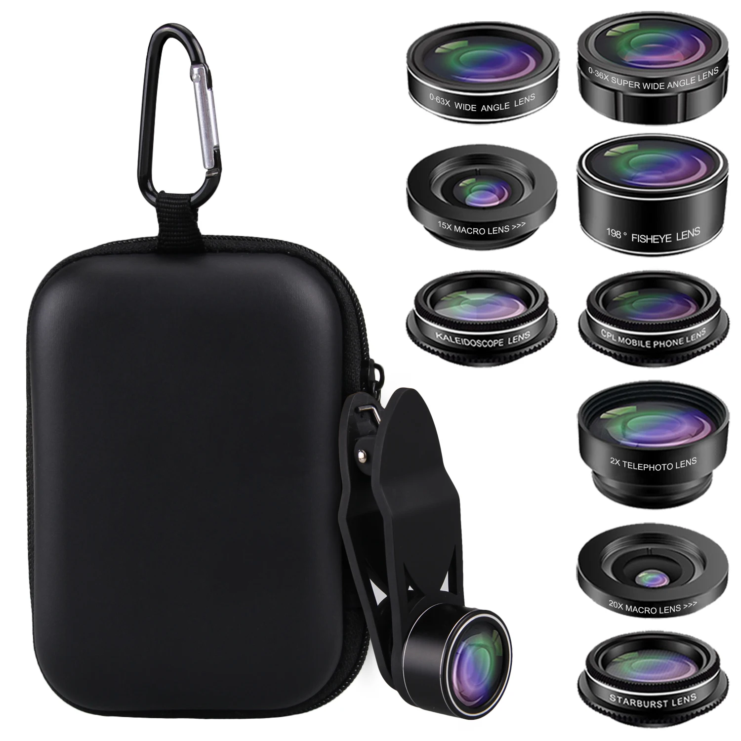 9 в 1 универсальный набор объективов для камеры телефона с широкоугольным телеконвертером Рыбий глаз Макро Звездный фильтр круговой поляризационный фильтр калейдоскоп объектив