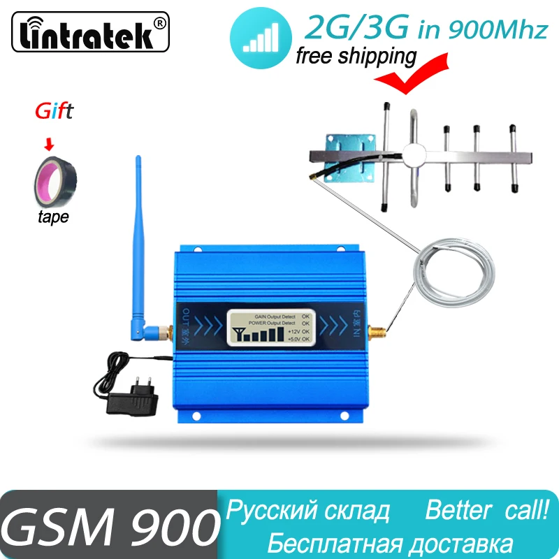 Бесплатная доставка Lintratek России 2 г GSM 900 МГц, репитер/ретранслятор сигнала repetidor 900 МГц 65dB сотовый телефон усилитель сигнала 3 телевизионные ...