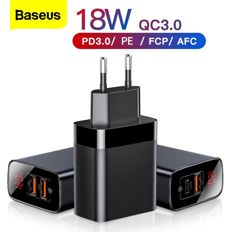 Baseus цифровой дисплей Быстрая зарядка 3,0 USB зарядное устройство 18 Вт PD 3,0 быстрое зарядное устройство для iPhone 11 Pro зарядное устройство для мобильного телефона USB C зарядное устройство