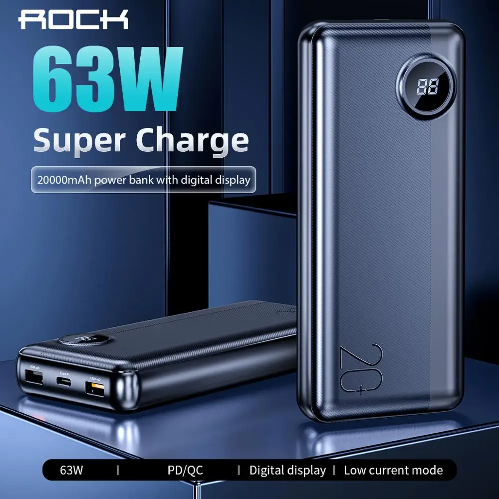 ROCK 20000 мАч Внешний аккумулятор USB C PD Быстрый 3,0 63 Вт Портативный внешний аккумулятор зарядное устройство светодиодный дисплей внешний аккумулятор для iPhone Xiaomi9
