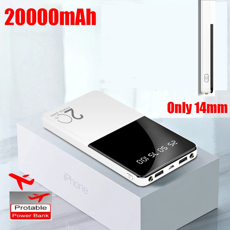 Тонкий внешний аккумулятор 20000 мАч, быстрое зарядное устройство, внешний аккумулятор 20000 мАч, тонкий внешний аккумулятор, портативное заряд...