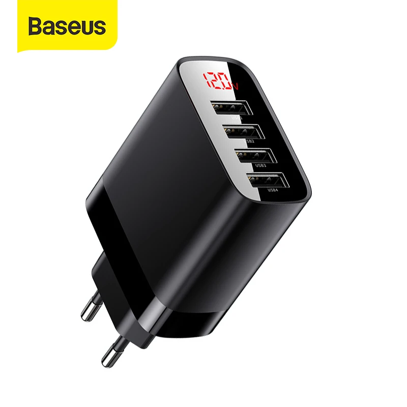 Baseus, цифровой дисплей, 4 порта, USB зарядное устройство, 6A, быстрая зарядка, EU адаптер, настенное зарядное устройство для iPhone11 XS XR, зарядное устр...