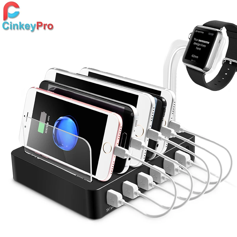 Cinkeypro 6 Порты USB таблицы Зарядное устройство с для Apple Watch док Samsung iPhone iPad Универсальная зарядка 5 В/10A зарядная станция