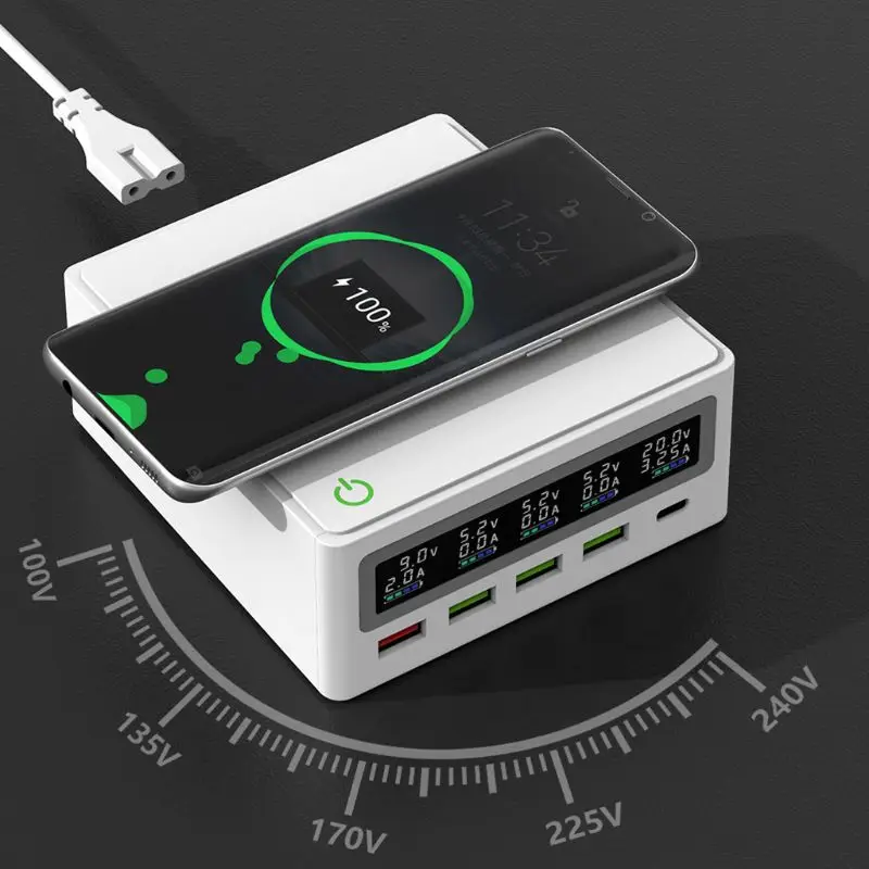5-портовый QC3.0 USB Type C PD 65W адаптер питания Qi Беспроводное зарядное устройство для мобильного телефона быстрая зарядная станция для ноутбука мобильный телефон планшет