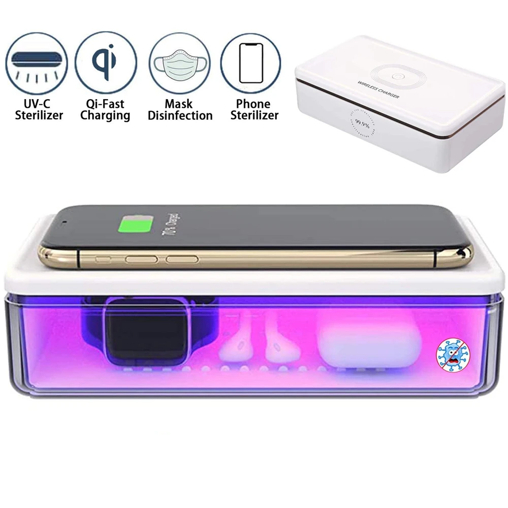 15 Вт Qi Беспроводное зарядное устройство УФ-свет стерилизатор коробка быстрая зарядка для iPhone 11 XS XR 8 Airpods часы Samsung S20 для маска дезинфицирующее средство