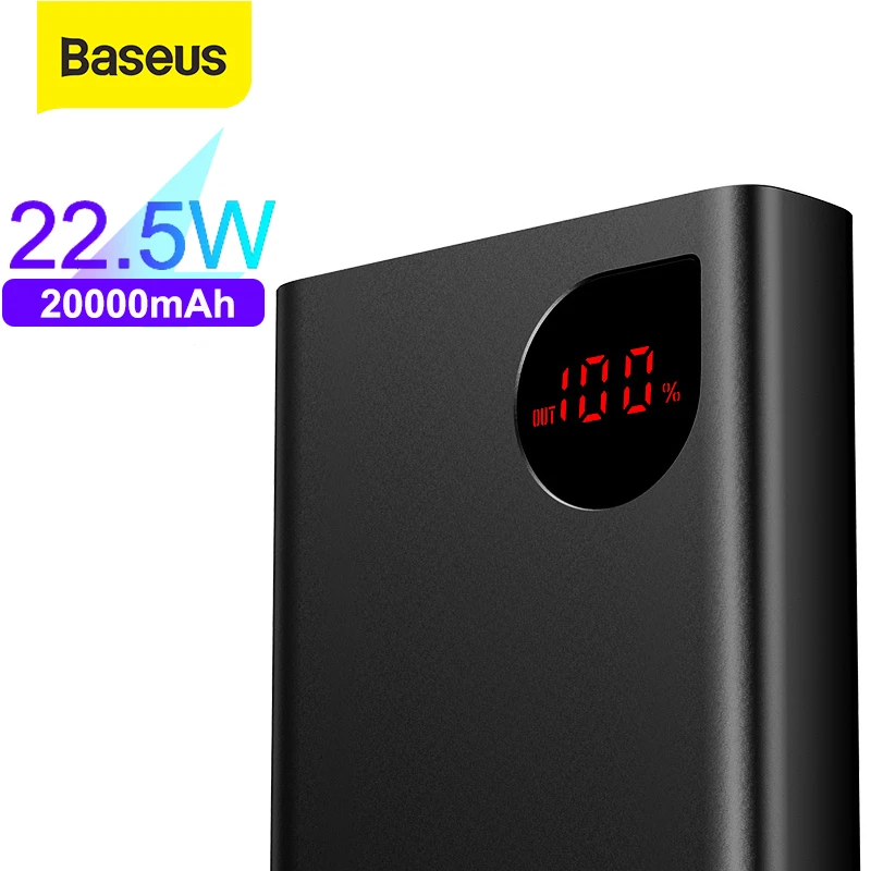 Baseus 20000 мАч Мощность банка 22,5 Вт Quick Charge 3,0 внешнее зарядное usb-устройство для аккумулятора Быстрая зарядка PD SCP Мощность банка для телефонов Xiaomi