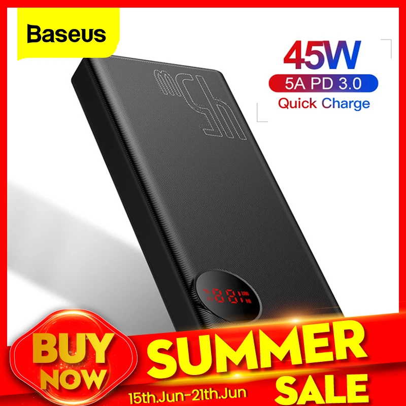 Baseus 20000 мАч Быстрая зарядка Power Bank PD 45 Вт 20000 мАч портативное Внешнее зарядное устройство для iPhone Xiaomi Mi Huawei