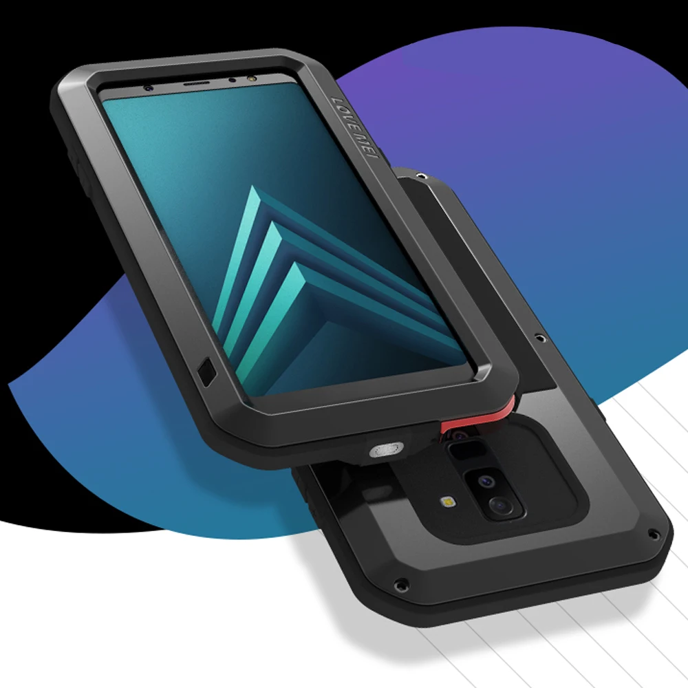 Heavy Duty Защита чехол для телефона для samsung Galaxy A6 A6 плюс 2018 Броня металлический закаленное Стекло кремния a6plus Алюминий A6 + крышка
