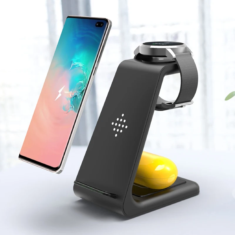 3 в 1 Qi зарядное устройство 10 Вт Быстрое беспроводное зарядное устройство для iphone samsung держатель телефона для iWatch Airpods Galaxy Buds gear S4 S3 док-зарядное устройство