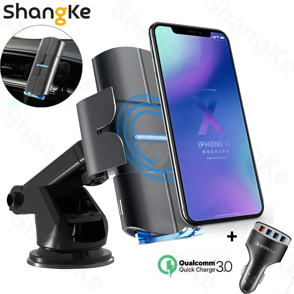 Автоматическое зажимное беспроводное автомобильное зарядное устройство QC 3,0 QI 10 Вт быстрая зарядка автомобильное крепление для iPhone 11 Xs XR X samsung S10 + S9 + S8 Note 9