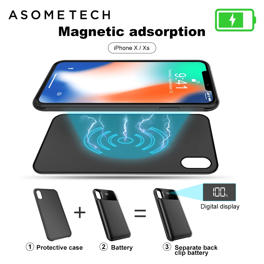 Магнитная батарея, чехол, внешний аккумулятор 5500 мАч, Беспроводная зарядка, внешний аккумулятор для iphone xr xs max xs X
