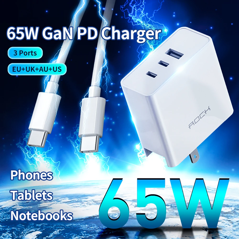 ROCK GaN 65 Вт Быстрое PD зарядное устройство для iPhone 11 Pro Macbook 3 порта USB Type C QC 4,0 зарядное устройство Складной адаптер настенное зарядное устройство для Xiaomi