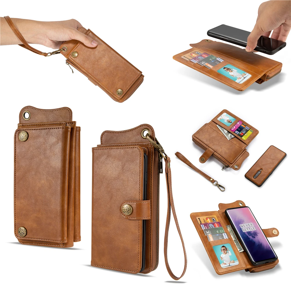 Роскошная кожаная сумка-кошелек с молнией чехол для OnePlus 7 Pro Многофункциональный detahab съемный Флип с отделением для карт, на магните чехол