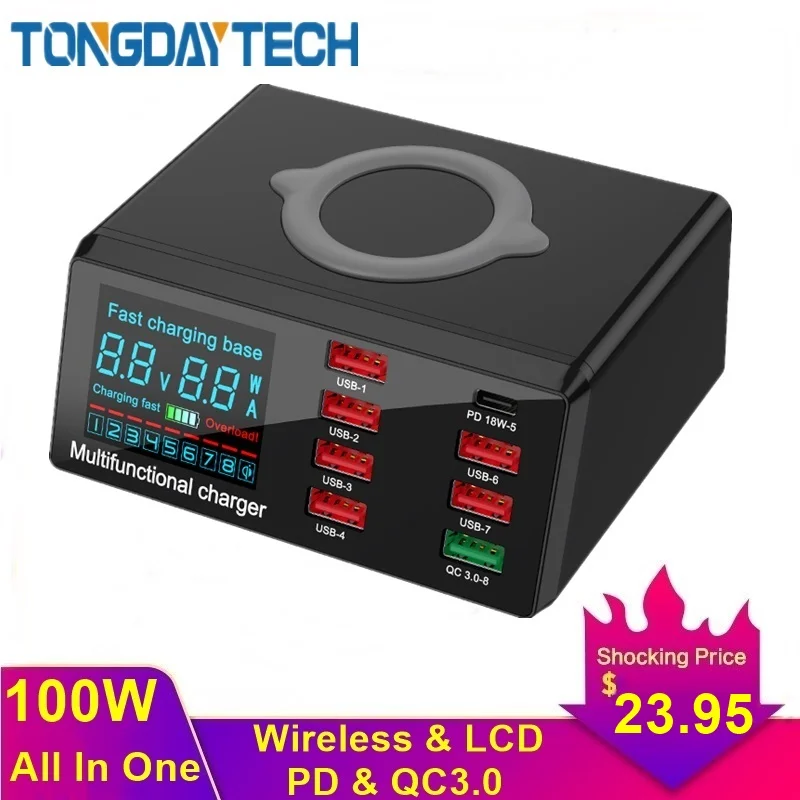 Tongdaytech 100 Вт Мульти 8 портов USB быстрое зарядное устройство для Iphone 11 Pro XS XR 8 Быстрая зарядка 3,0 Qi Беспроводное зарядное устройство для Samsung S10 S9