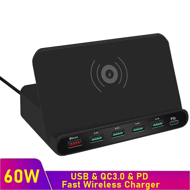 Tongdaytech мульти 5 портов USB зарядное устройство Qi Быстрое беспроводное зарядное устройство Быстрая зарядка 3,0 Cargador Inalambrico для Iphone X 11 Pro Samsung