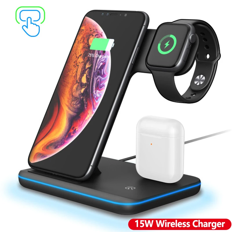 Qi беспроводной 15 Вт Быстрое зарядное устройство Держатель для Hauwei samsung Note 10 Быстрое Зарядное устройство Док-станция для Apple IPhone airpods часы 4 3 2 1