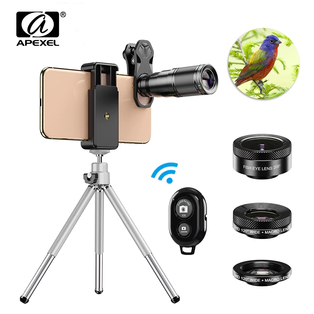 APEXEL оптический HD объектив камеры телефона набор 4в1 телефото зум Монокуляр телескоп 22X объектив + Макро Широкий Рыбий глаз с дистанционным штативом
