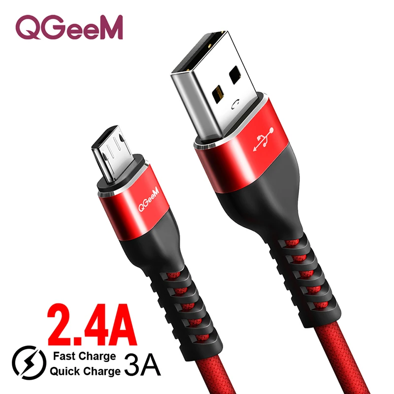 QGeeM Micro USB кабель 2.4A нейлон Быстрая зарядка USB кабель для передачи данных для samsung Xiaomi LG планшет Android мобильный телефон usb кабель для зарядки