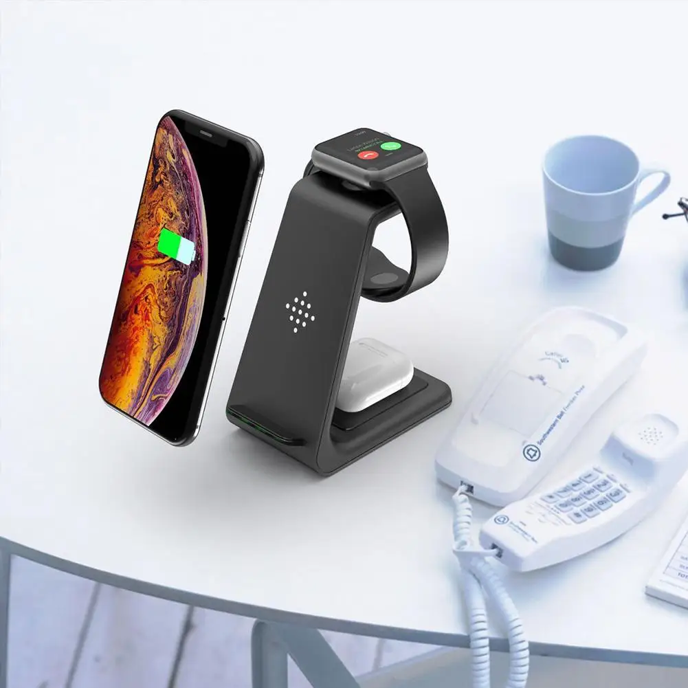 3 в 1 Qi Беспроводная 2 мм-10 мм Быстрая зарядка зарядное устройство док-станция для iPhone для AirPods Pro ABS 10 Вт для домашнего офиса горячая распродажа