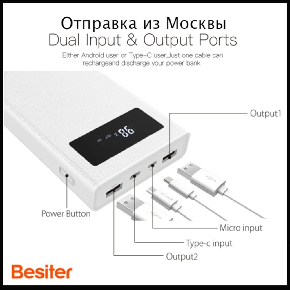 Внешний аккумулятор Besiter 20000 мАч Зарядное устройство для телефона/портативное зарядное устройство Внешняя батарея
