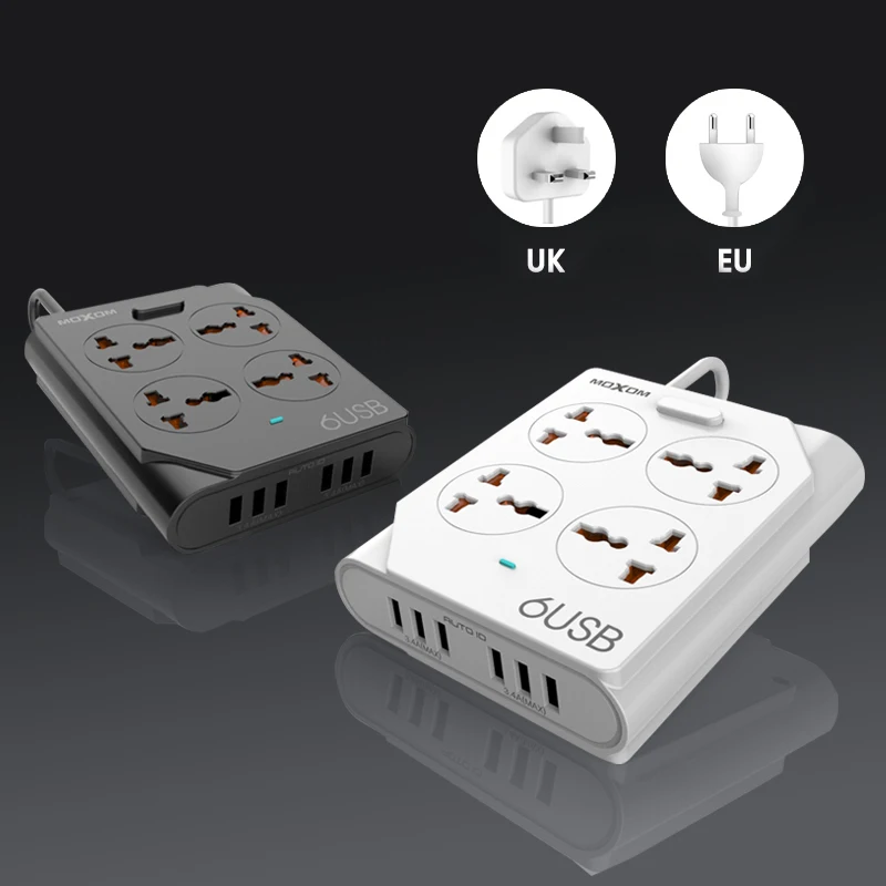 MOXOM сетевой шнур USB выход полосы 10A быстрой зарядки 6 USB расширители Plug 4 Электрический фильтр адаптер ЕС Великобритания ЕС мощность полосы