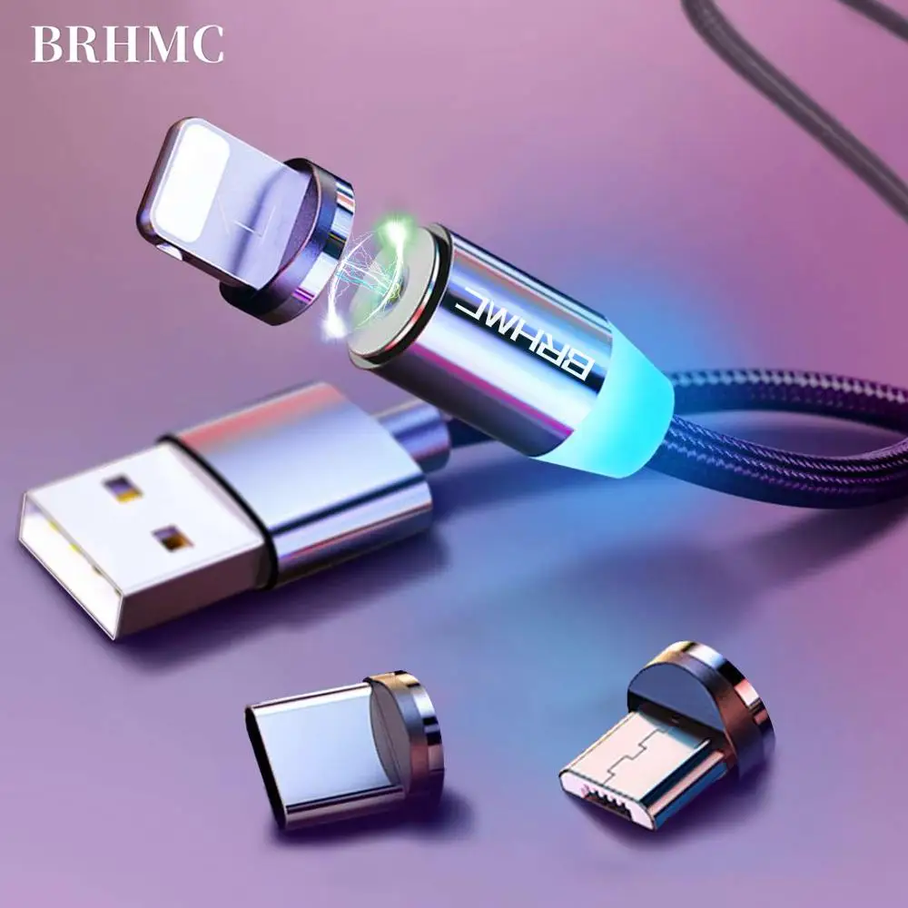 BRHMC Магнитный Micro USB кабель для iPhone Samsung Android Быстрая зарядка магнит Зарядное устройство USB Type C кабель Мобильный телефон шнур провод