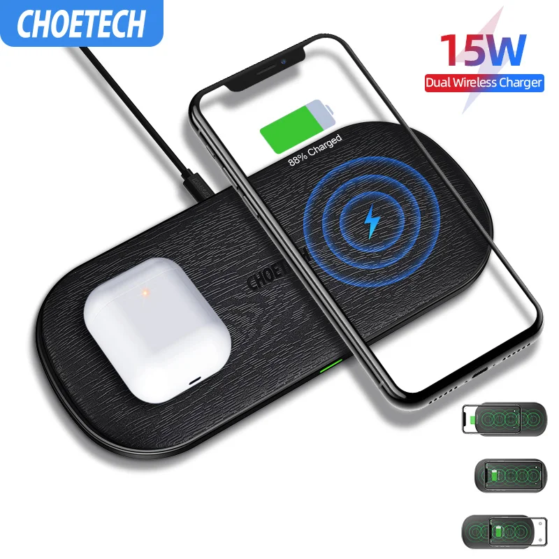 CHOETECH Беспроводной Зарядное устройство двойной Pad быстро QI Беспроводной зарядки для iPhone Xs Max Xr X 10 W 2 телефонов док Зарядное устройство для ...