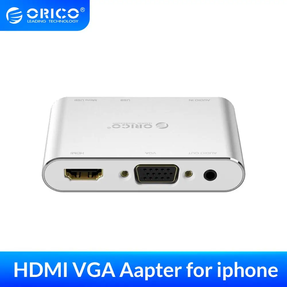 ORICO мобильный телефон видео адаптер 1080P HD HDMI VGA для iPhone ipad планшетный конвертер с 3,5 мм AUX аудио адаптер