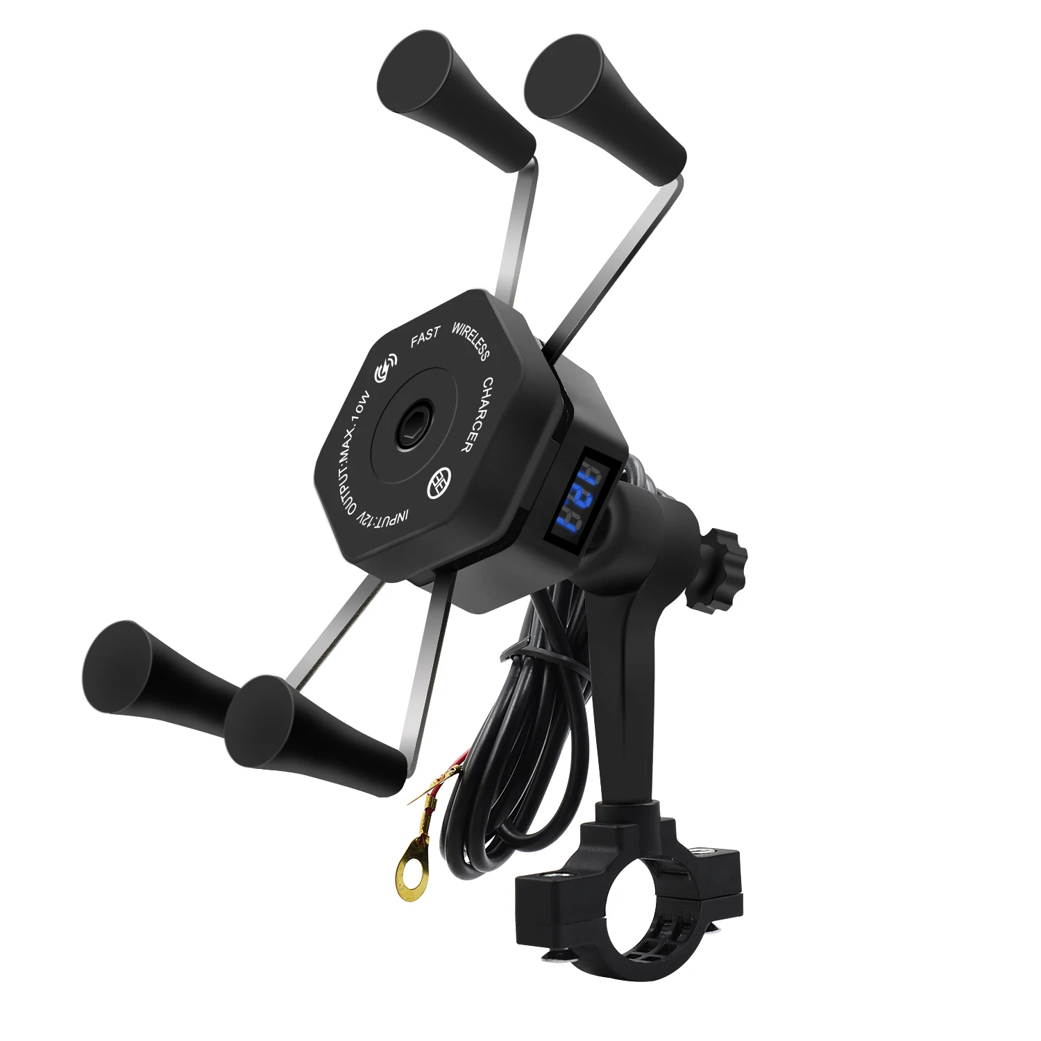 12В беспроводной Перезаряжаемый металлический держатель для телефона мотоцикла для мобильного телефона с поддержкой телефона мото GPS Держатель водонепроницаемый переключатель