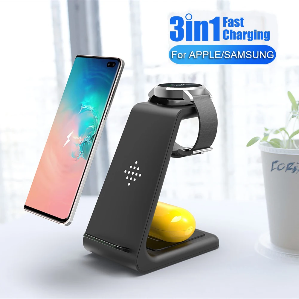 Беспроводное зарядное устройство 3 в 1 QI 10 Вт, быстрая зарядка для iPhone, samsung Buds, беспроводное зарядное устройство, подставка для Apple Watch Airpods Pro