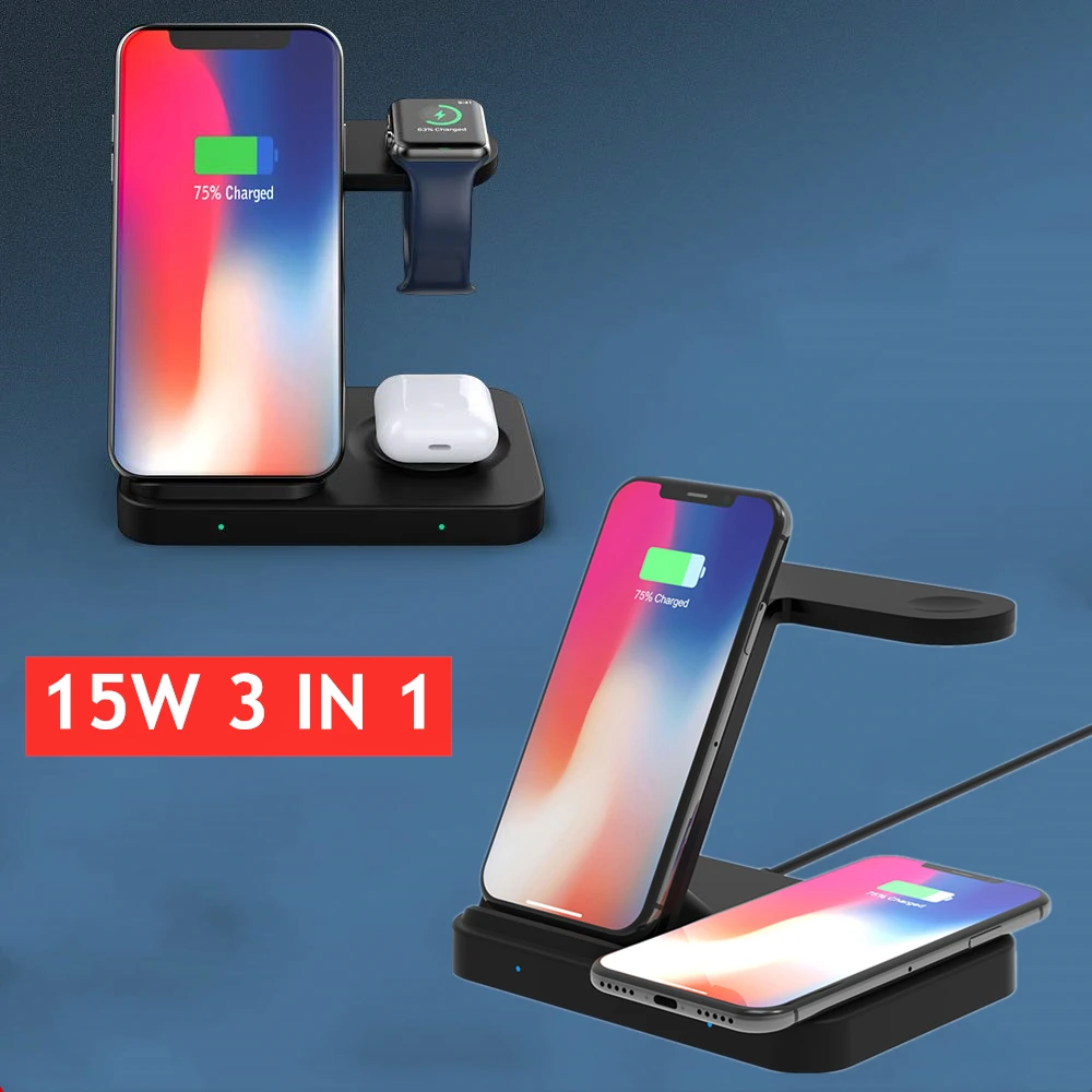 15 Вт Qi Беспроводное зарядное устройство док-станция 3 в 1 для iPhone 11 XS XR X 8 Airpods Pro USB быстрая зарядка Подставка для Apple Watch 5 4 3 2