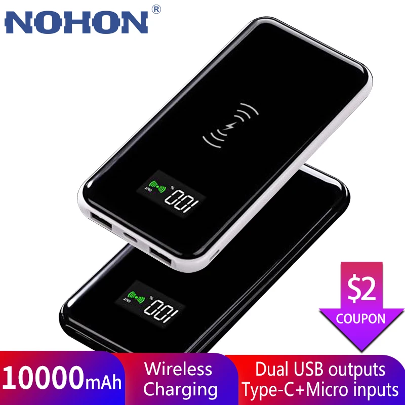 NOHON Беспроводной внешний аккумулятор 10000 мАч для iPhone Huawei Xiaomi Внешний аккумулятор 10000 мАч портативное зарядное устройство универсальное