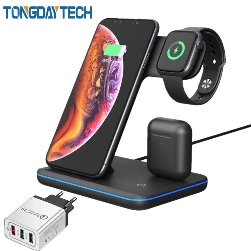 Беспроводное зарядное устройство Qi 15 Вт для Iphone X 8 Xiaomi huawei Quick Charge 3,0 быстрая зарядная док-станция для Apple Airpods Watch 4 3 2 1