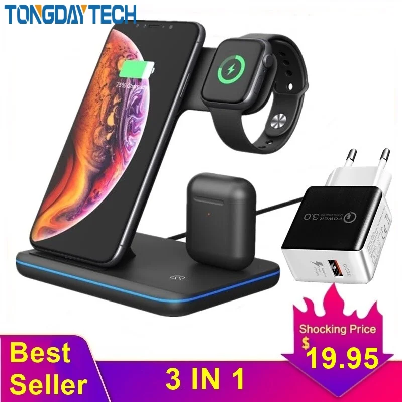 Tongdaytech 15 Вт Быстрое беспроводное зарядное устройство Qi для Iphone XS 8 11 Pro Max Беспроводная зарядная станция для Apple Airpods Watch 5 4 3 2 1