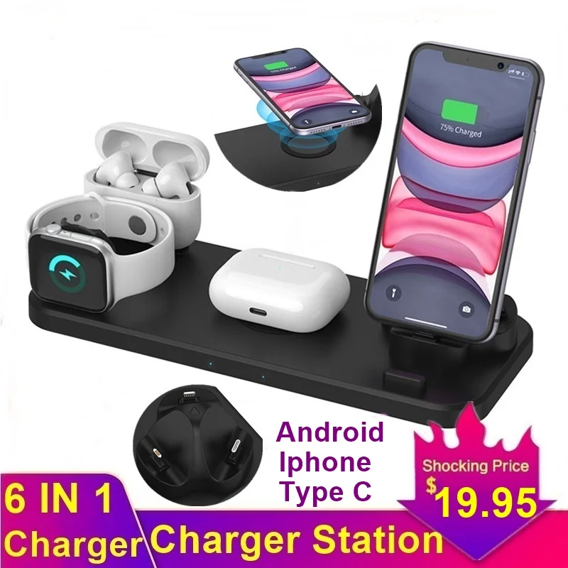 6 в 1 Qi Беспроводное зарядное устройство для Iphone XS 8 11 Pro Max Быстрая зарядка Cargador Inalambrico для Airpods Pro Apple Watch 5 4 3 2 1