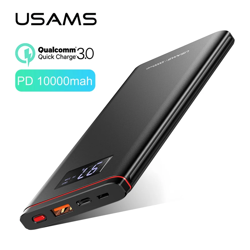 Ультратонкий внешний аккумулятор, USAMS 10000 мАч 18 Вт QC 3,0 + PD Быстрая Зарядка Внешний аккумулятор ЖК-дисплей внешний аккумулятор Тип C & Micro порт ...