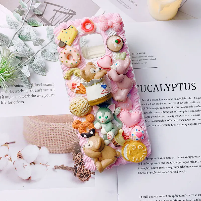 3D чехол DIY для samsung Note 10 Galaxy s10plus s6/s7/s8/9 + чехол для телефона ручной работы кремовая оболочка note8/9 милый медведь розовый подарок для девочки