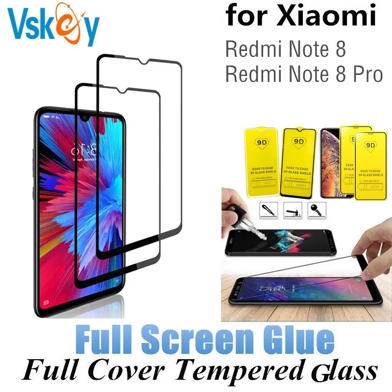 VSKEY 100 шт 2.5D Полный Клей закаленное стекло для Xiaomi Redmi Note 8 Pro Полное покрытие Защитная пленка для экрана