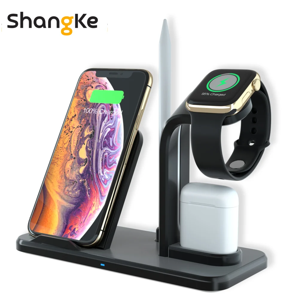 4 в 1 Беспроводной Зарядное устройство подставка для iPhone AirPods Apple Watch Charge док-станции для Apple Watch Series 4/3/2/1 iPhone X 8 XS XR