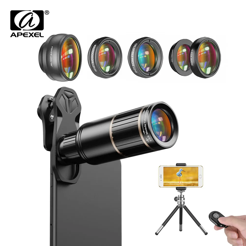 APEXEL телефон фотография комплект 16x телескоп телефото зум объектив со штативом + 5в1 рыбий глаз Широкий для iphone huawei все телефоны
