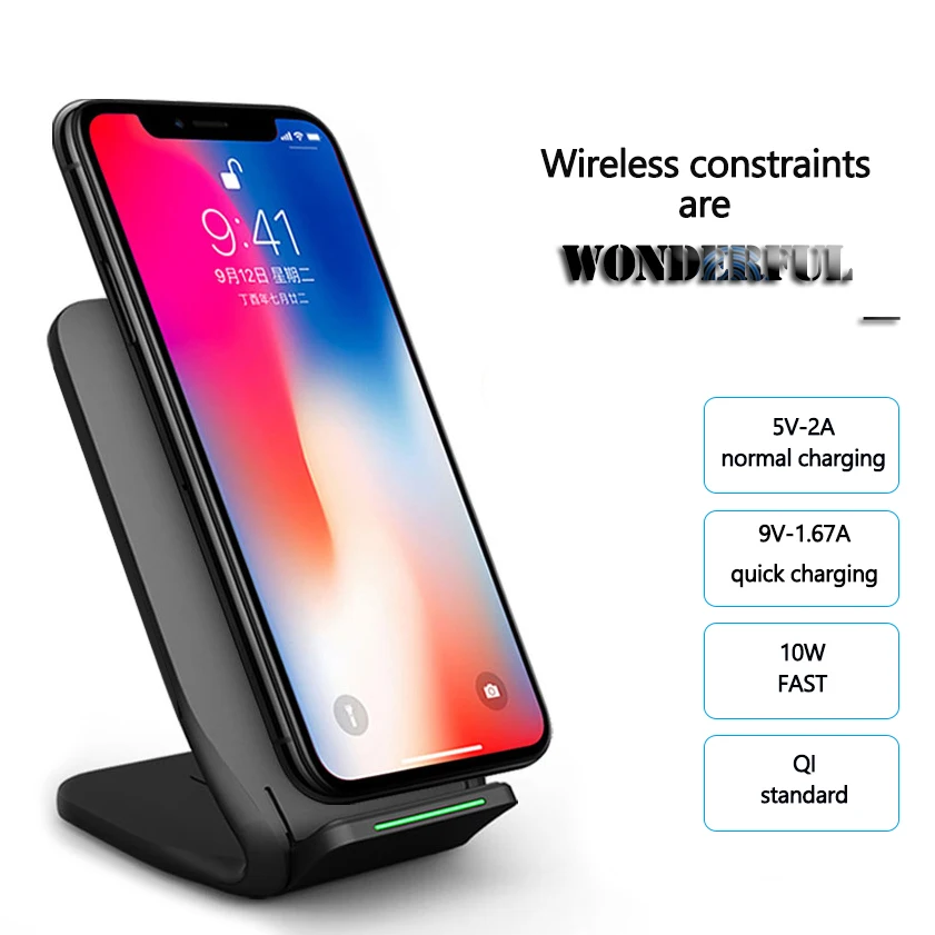 Qi быстрая Беспроводная зарядная док-станция 10 Вт для iPhone X XS Max XR 8 Plus для samsung S9 S10 + Note 9 8 для huawei