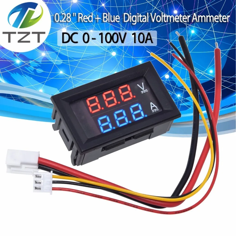 DC В 0-100 в 10A цифровой вольтметр Амперметр двойной дисплей Напряжение детектор измеритель тока щитовой Амперметр Вольт Калибр 0,28 "красные, си...